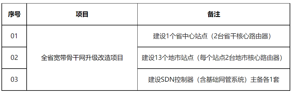 根据介绍,该项目分省中心站点、13个地市站点及SDN控制器(含基础网管系统)等建设内容,须满足2022、2023年江苏有线宽带骨干网发展需求。