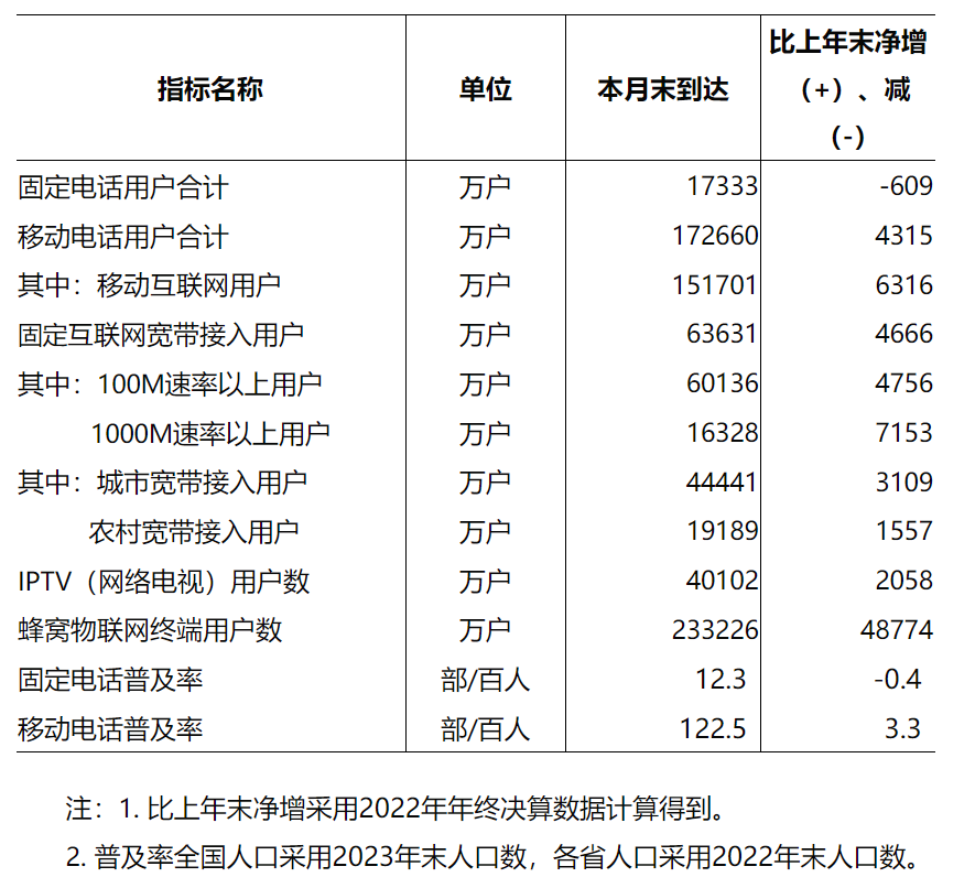 1月24日,工信部运行监测协调局正式发布了2023年通信业统计公报。