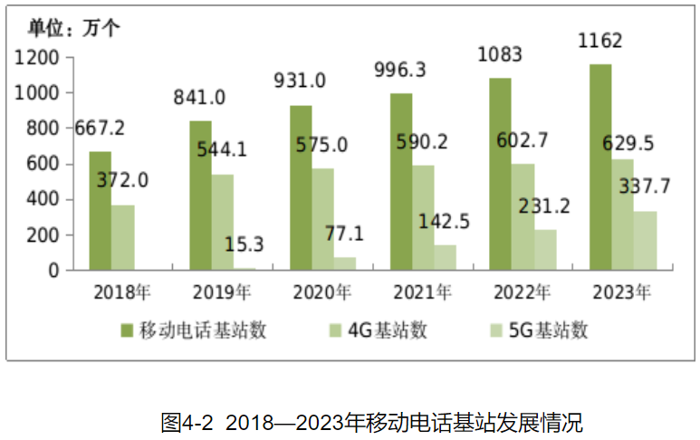 全国移动通信基站总数达1162万个,其中5G基站为337.7万个,占移动基站总数的29.1%,占比较上年末提升7.8个百分点。