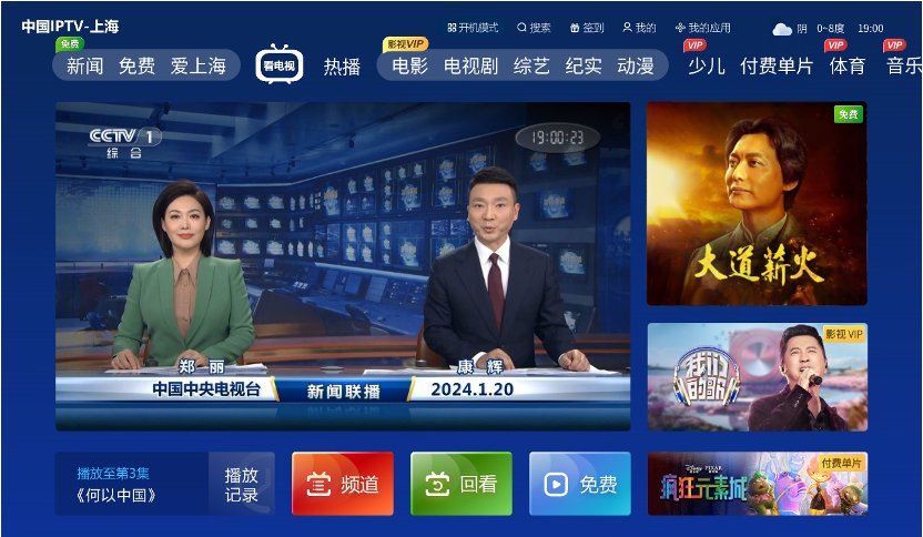 更新升级后,上海地区IPTV用户打开电视机就能全屏观看电视直播频道并默认播放CCTV-1,随后即可随心所欲“调频道”:通过遥控器“上下”键可切换直播频道,按“菜单”键可查看节目单。在全屏播放状态下,IPTV用户可通过遥控器“返回”键返回交互主页中的“看电视”页,享受更多电视服务。