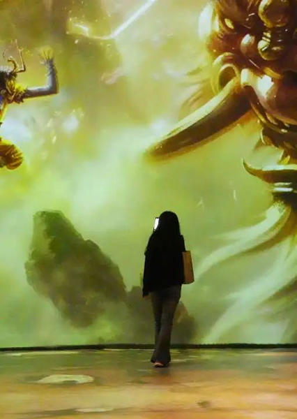 此次线下展演的AI版《大闹天宫》是国内首部也是目前唯一一部借助AIGC技术实现商业化的艺术作品。通过AIGC工具专为艺术馆内的超宽环幕创作定制内容,同时借助360度裸眼虚拟现实技术,使观众获得了前所未有的震撼视觉体验!