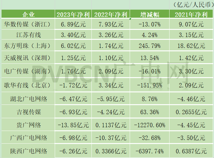 1)有三家企业净利由盈利转为了亏损,为北京歌华有线、贵州的贵广网络、陕西广电网络,歌华有线是成立二十多年来首次净利亏损;