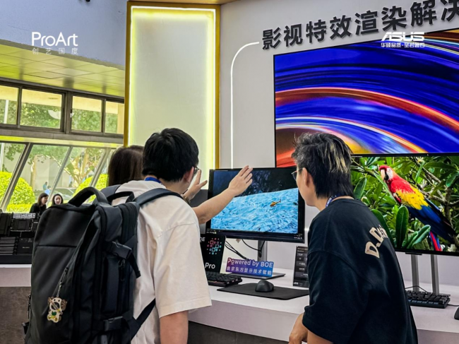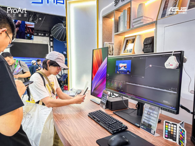 在显示器方面,创梦32 Plus PA32UCDM以其QD-OLED面板、HDR技术、4K超高清分辨率,为创作者们带来了极致细腻、清晰、顺滑的画面展示效果,大幅加速了创意呈现。而创梦27 PA27JCV则以其5K分辨率、218 high-PPI与广色域覆盖,成为了中小型工作室和个人创作者的理想选择。两款显示器共同助力,让影视特效渲染剪辑工作变得更加高效与轻松,吸引了众多参展用户驻足观看。