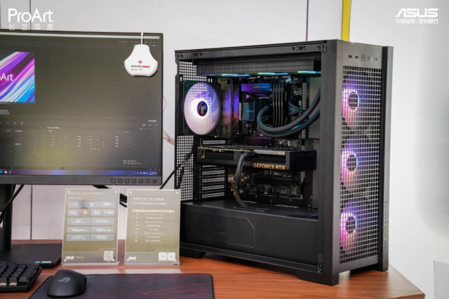 在主机方面,选择了华硕 TUF 302 装备库工作站整机,主板为PROART B760-CREATOR D4,专为创作专业人士而打造,提供优异的性能以执行实时渲染、复杂的仿真及数据密集工作负载。另外,专为AI训练、深度学习、动画或3D渲染的专业人士使用搭配了华硕 ProArt RTX4060Ti O16G,以其强悍的性能,出色的连接能力,更佳的可靠性。TUF GAMING GT302装备库机箱,搭配Prime LC 360 ARGB水冷散热器和TUF GAMING 突击手750W电源,则为性能释放提供了全面保障。适合从机器学习到实时渲染等各种场合华硕工作站系列为创意专业人士和IT管理者提供了理想的解决方案。