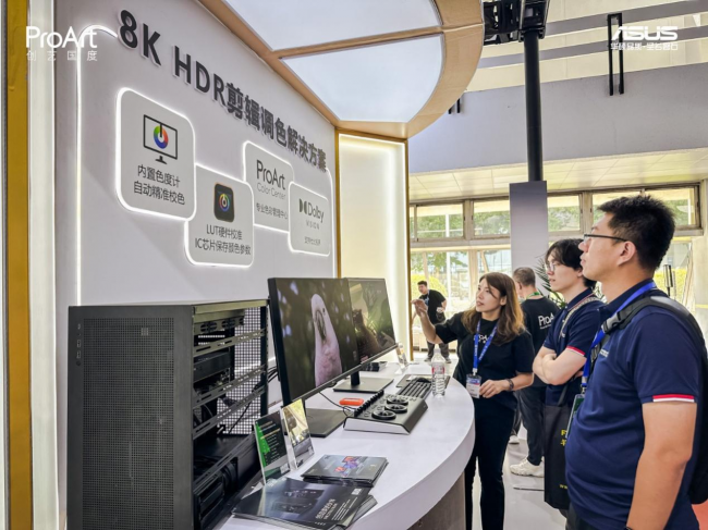 在8K HDR视频剪辑调色领域,华硕ProArt创艺国度的解决方案同样令人瞩目。展会上华硕展示了专为剪辑后期与调色师设计的8K HDR视频剪辑调色解决方案,4K+8K专业创作显示器搭配,在提高用户创作效率的同时,也注意到了创作者对色彩的敏锐度。该方案旨在通过显示技术与硬件配置,为用户提供最为精确的色彩管理与高效的剪辑体验。