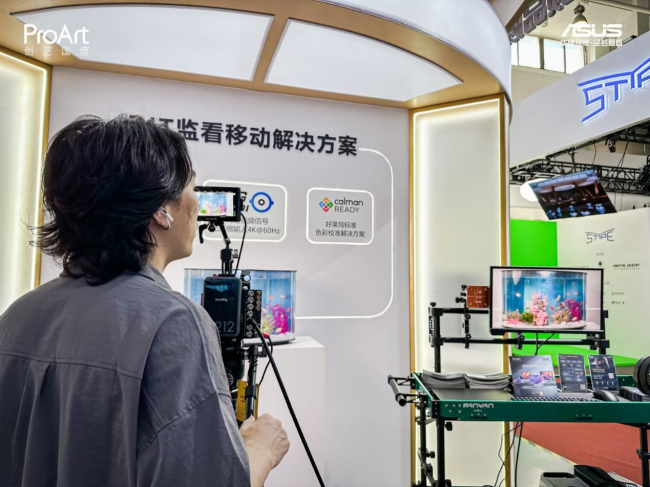 此外,为提高现场效率,该方案还搭配了专业创作笔记本华硕ProArt 创16(雷电4版本)搭载了雷电4高速接口,支持数字影像工程师现场即时处理与修改画面问题,现场工作流程变得简单高效。吸引了众多影视行业从业者及摄影摄像爱好者的关注,成为展会上一道亮丽的风景线。