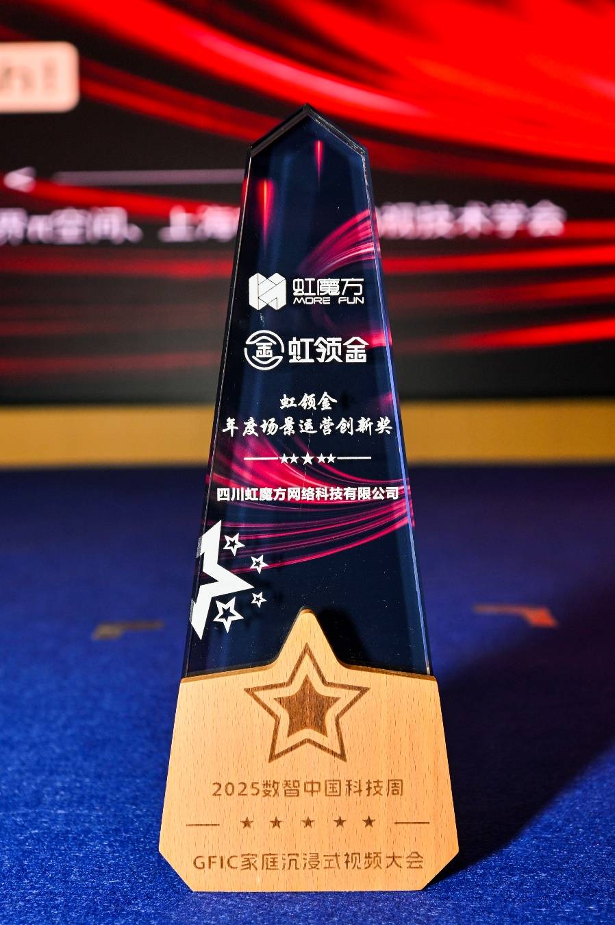 在近日举办的“数智中国科技周·GFIC家庭沉浸式视频大会”上,备受瞩目的“万象之星”奖项评选结果正式揭晓。四川虹魔方网络科技有限公司(以下简称虹魔方)旗下运营的虹领金表现卓越,一举斩获三项大奖:年度最具创新力品牌、年度智能交互突破奖及年度场景运营创新奖,成为本届盛典中备受关注的焦点企业之一。