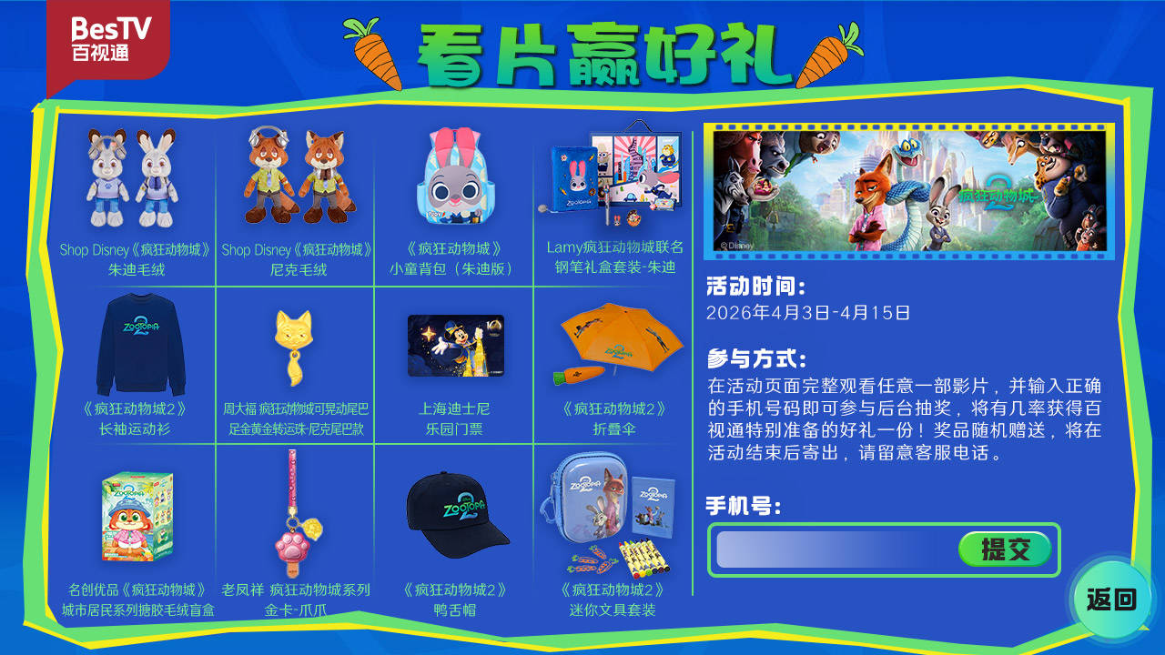 打开电视等你来“疯” 《疯狂动物城2》登陆百视通全平台