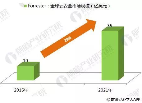图表6:Forrester:2021年全球云安全前景预测(单位:亿美元,%)