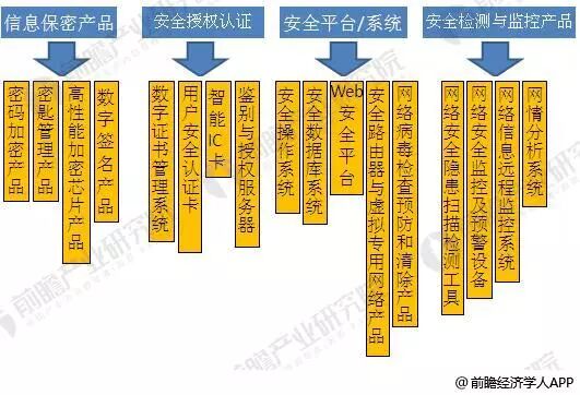 从细分领域来看,云安全分为政务安全、军事行业、商业安全、网络安全、数据安全、设备安全、灾备技术等。从产品种类来看,云安全产品主要有信息保密产品、安全授权认证产品、安全平台/系统、安全检测与监控产品等。