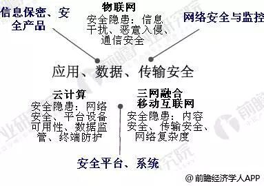 在信息安全领域中,应用、数据、传输安全是最重要的几个环节,也是云计算、物联网、三网融合、移动互联网投资最大的几个领域。各个领域对信息安全的不同需求,以及企业提供的相应产品,形成了云安全的生态链。