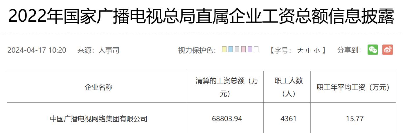 中国广电披露2024年平均工资17.13万元 涨薪6.6%